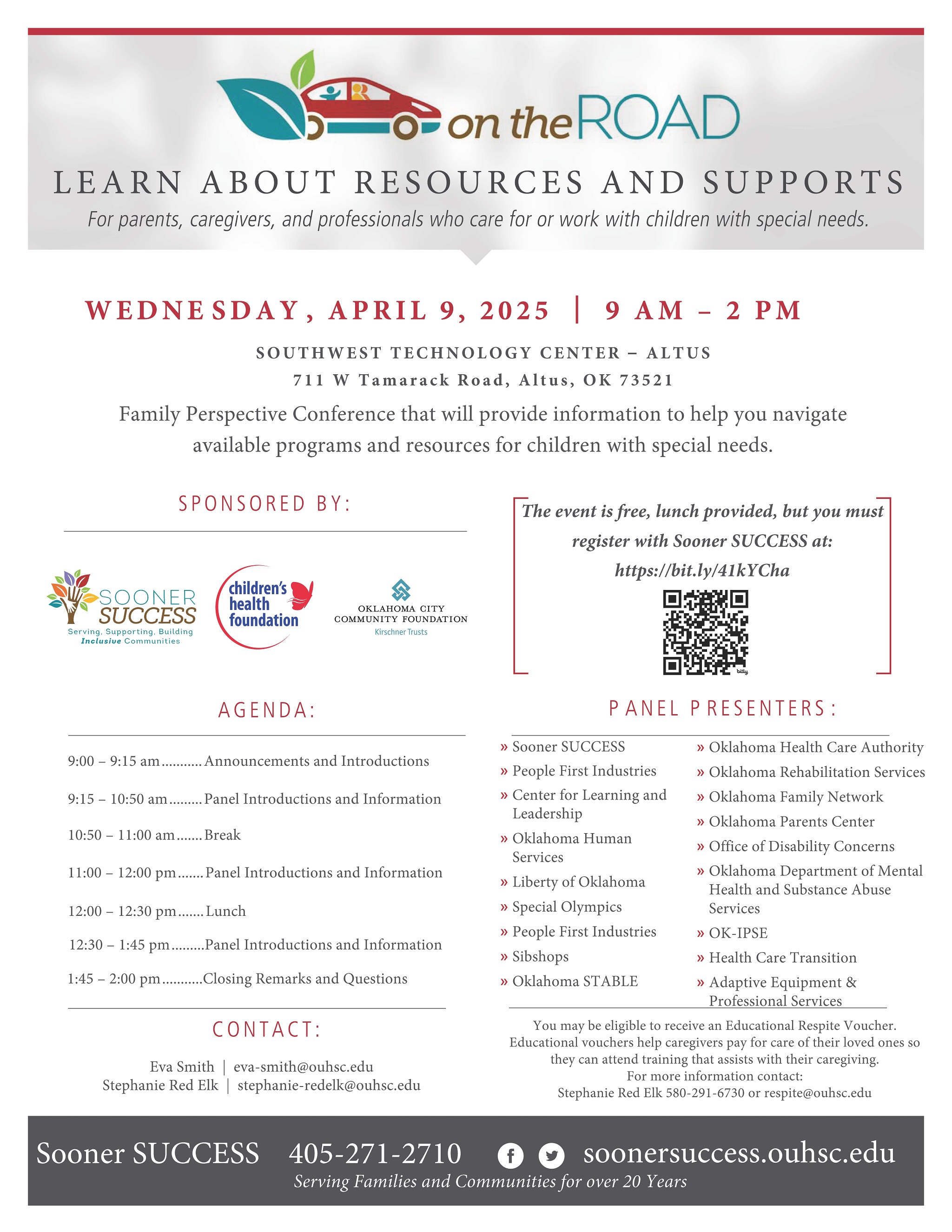 On the Road Conference in ALTUS on April 9. This conference is for caregivers of children with special needs as well as the providers/teachers that serve them. The conference is free but RSVP is required: https://bit.ly/41kYCha