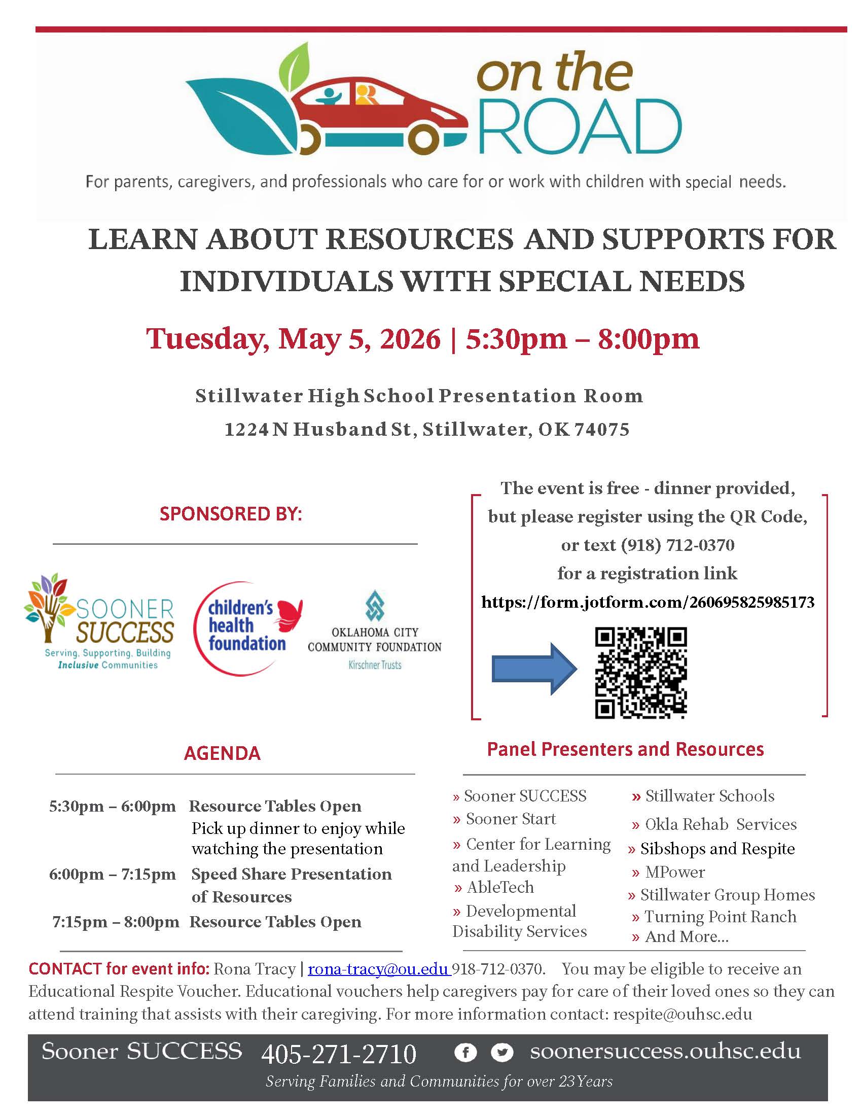 On the Road, Stillwater on May 5 from 5:30 - 8:00pm. Flyer Registration